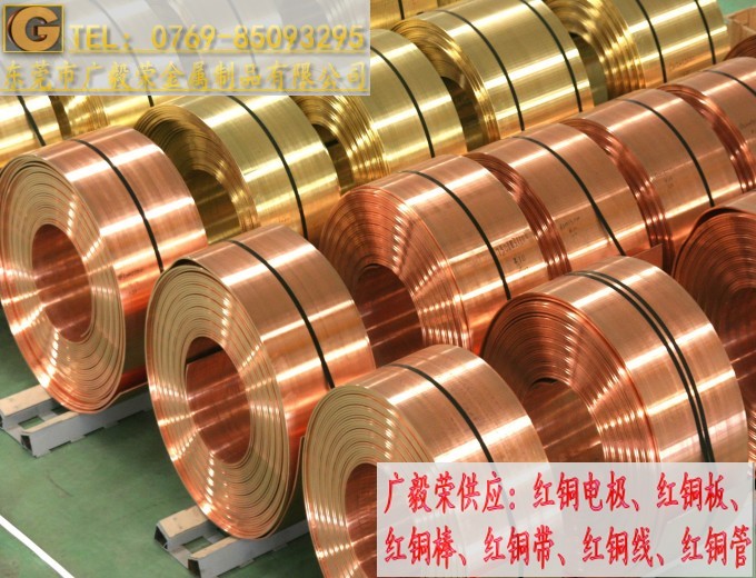 C1100紅銅帶材 C1100半硬紅銅帶 C1100紅銅帶材 C1100半硬紅銅帶 C1100紅銅帶材 C1100半硬紅銅帶 C1100紅銅帶材 C1100半硬紅銅帶 C1100紅銅帶材 C1100半硬紅銅帶 廣毅榮供應【紅銅、紅銅帶,半硬紅銅帶 ,紫銅棒, 紅銅棒、紫銅帶,紅銅排,1/2紫銅帶,紅銅帶材,純銅合金,電極銅棒,國家電廠專用紅銅棒、紫銅管。紫銅排,紅銅管,紅銅板。1/2紅銅帶,含銅量99.99】主營牌號:【T1、T2、T3、T4、C1100、C11000、C1050、C10500、C1020、C1221、C10200...】 紅銅介紹: 紅銅純銅,又名紫銅,具有很好的導電性和導熱性,可塑性極好,易于熱壓和冷壓力加工,大量用于制造電線、電纜、電刷、電火花專用電蝕銅等要求導電性良好的產品。